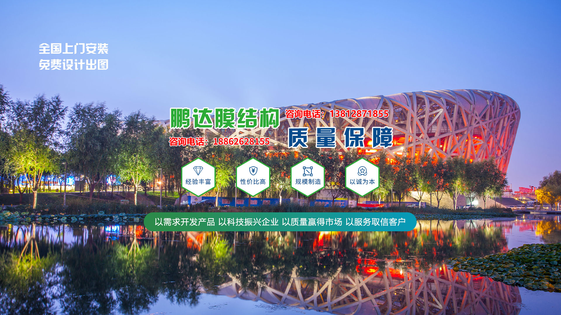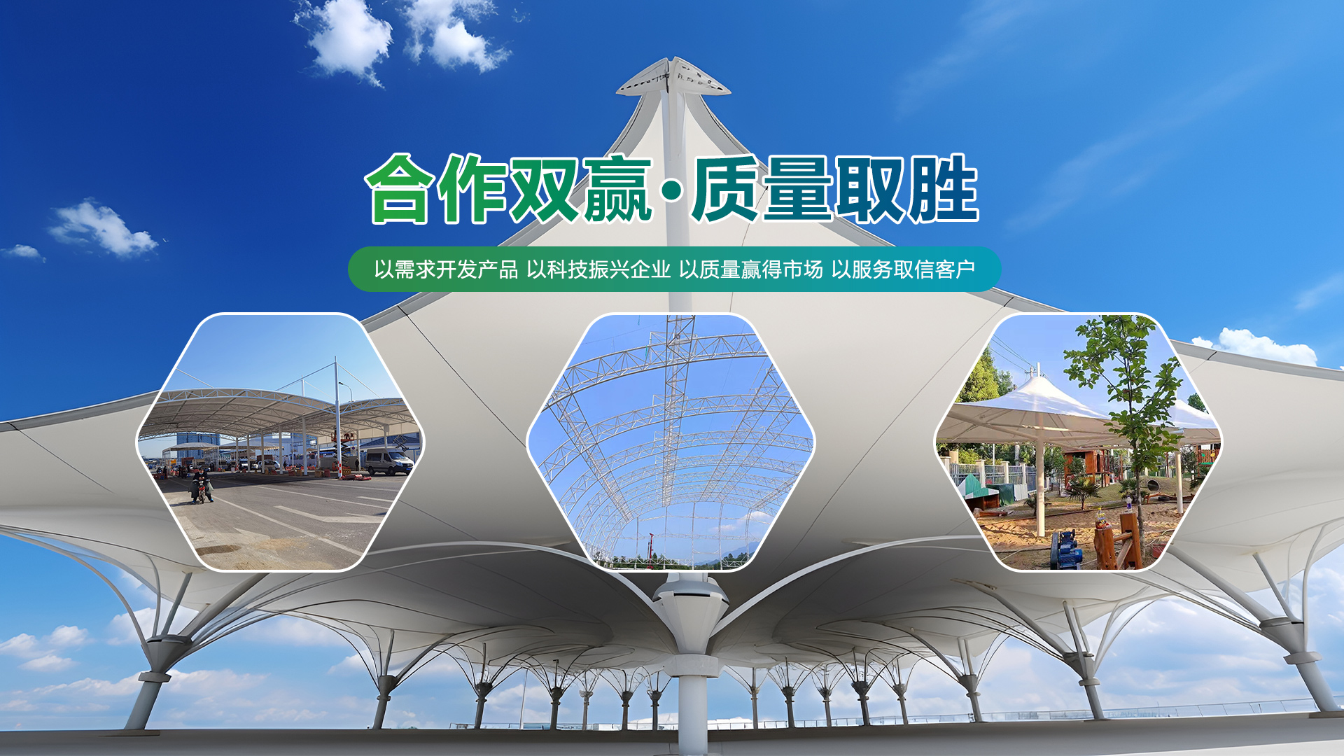 江蘇鵬達膜結構工程有限公司從事鋼膜結構設計、制作、安裝、生產、銷售。本公司擁有現代化標準加工車間為其它鋼結構公司、膜結構公司、膜結構安裝隊提供大梁、異形鋼梁加工 ,提供膜材加工、批發 ,擁有各種進口、國產膜材供客戶選擇。經營項目涉及張拉膜、骨架膜結構、景觀膜結構、高速公路膜結構收費站、體育場看臺膜結構、膜結構停車棚、遮陽膜結構設施、充電樁、鋼結構廠房,玻璃雨棚、伸縮推拉篷等方面。公司全體員工本著堅持技術進步的方針,對所有作業程序都進行嚴格控制,確保為客戶提供良好的工程質量和售后服務。并將以齊全的技術設備、良好的產品質量、完善的施工隊伍、嚴謹的工作作風,極高的工作效率的為廣大客戶提供良好的精品工程。
